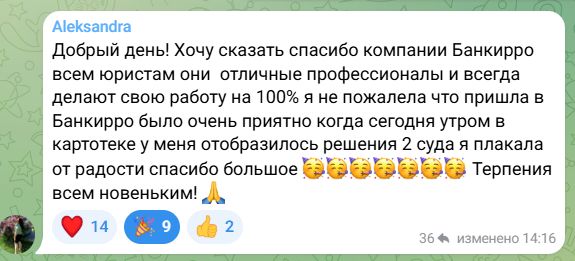 Это доказательство нашей компетентности и ответственности. Каждое успешно закрытое дело подтверждает, что мы умеем эффективно защищать права наших клиентов и обеспечивать положительный исход даже в сложных ситуациях.